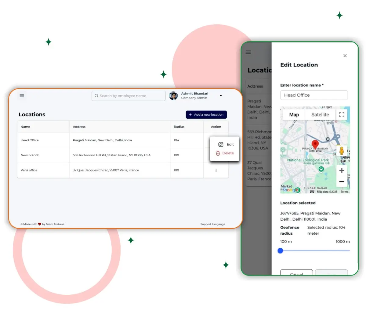 Manage attendance seamlessly across multiple locations and branches with a single cloud-based attendance system. All attendance punches from different sites are automatically synced into one platform, providing consolidated, geotagged reports.