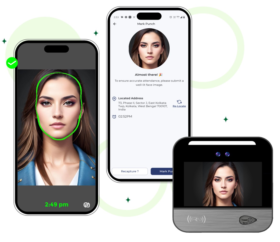 timely.bio offers a comprehensive time and attendance solution featuring AI-powered face recognition devices and advanced workforce management software. Our system simplifies attendance employee tracking, leave management, and access control for on-site, remote, field, hybrid, and contractual employees—ensuring secure authentication and efficient workforce management across diverse work environments.