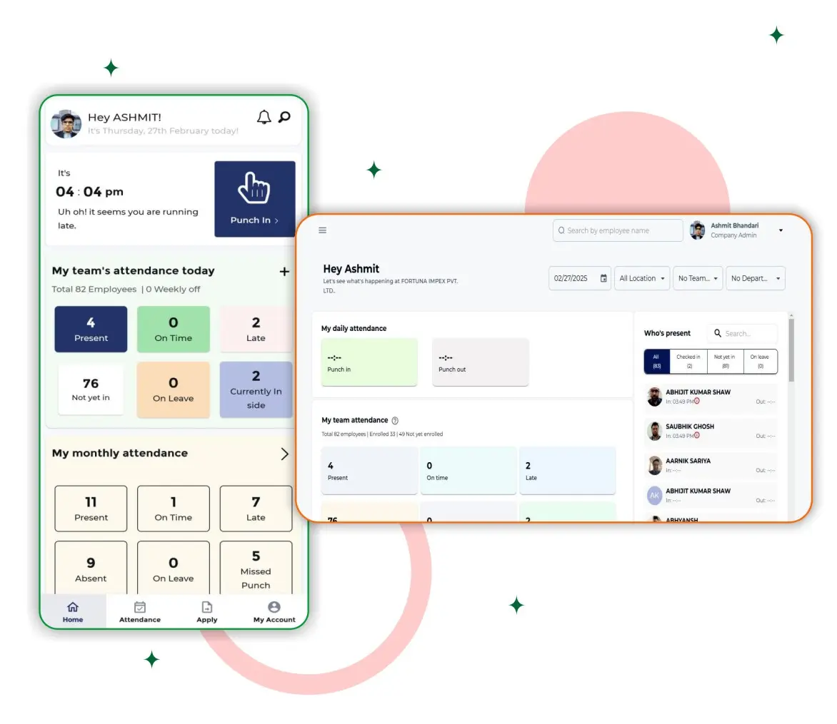 Employees can mark attendance effortlessly using either biometric devices or the Geofence-enabled mobile app, offering flexibility for on-site and remote teams with the benefits of Touchless Biometric Attendance Management.