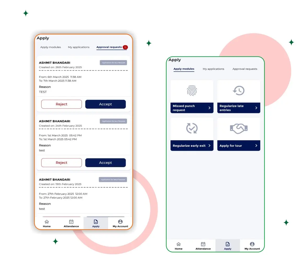 Managers can approve, reject, or cancel leave requests from their phone, ensuring efficient workforce planning and accurate payroll calculations. Integrated with the biometric face recognition system and the time and attendance system, detailed leave reports—including paid, unpaid, and sick leaves—can be generated and seamlessly synced with payroll software for smooth processing.